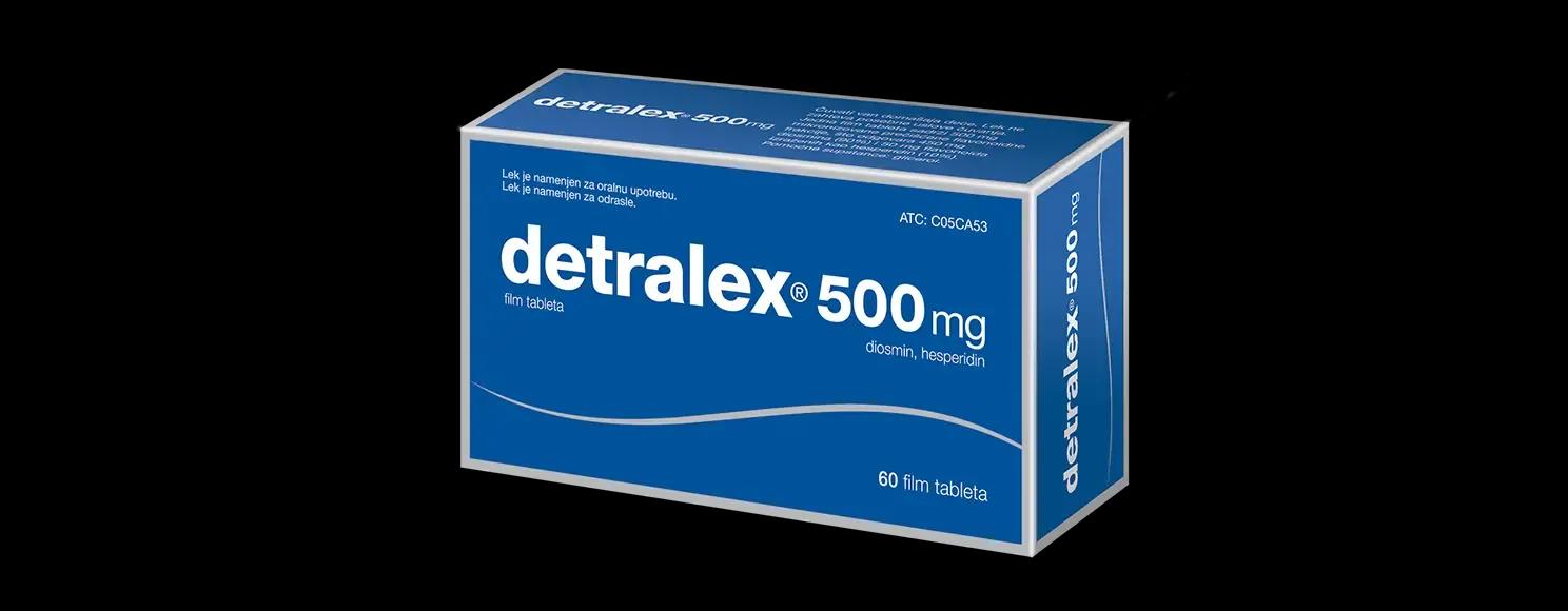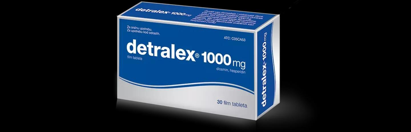 1. Šta je lek Detralex i čemu je namenjen Lek Detralex pripada grupi lekova koja povećava venski tonus i povećava otpornost kapilara (venotonik i vaskuloprotektiv). Simptomatska terapija akutnog hemoroidalnog sindroma. Ukoliko u toku 7 dana terapije ne dođe do poboljšanja, potrebno je da se obratite Vašem lekaru ili farmaceutu.